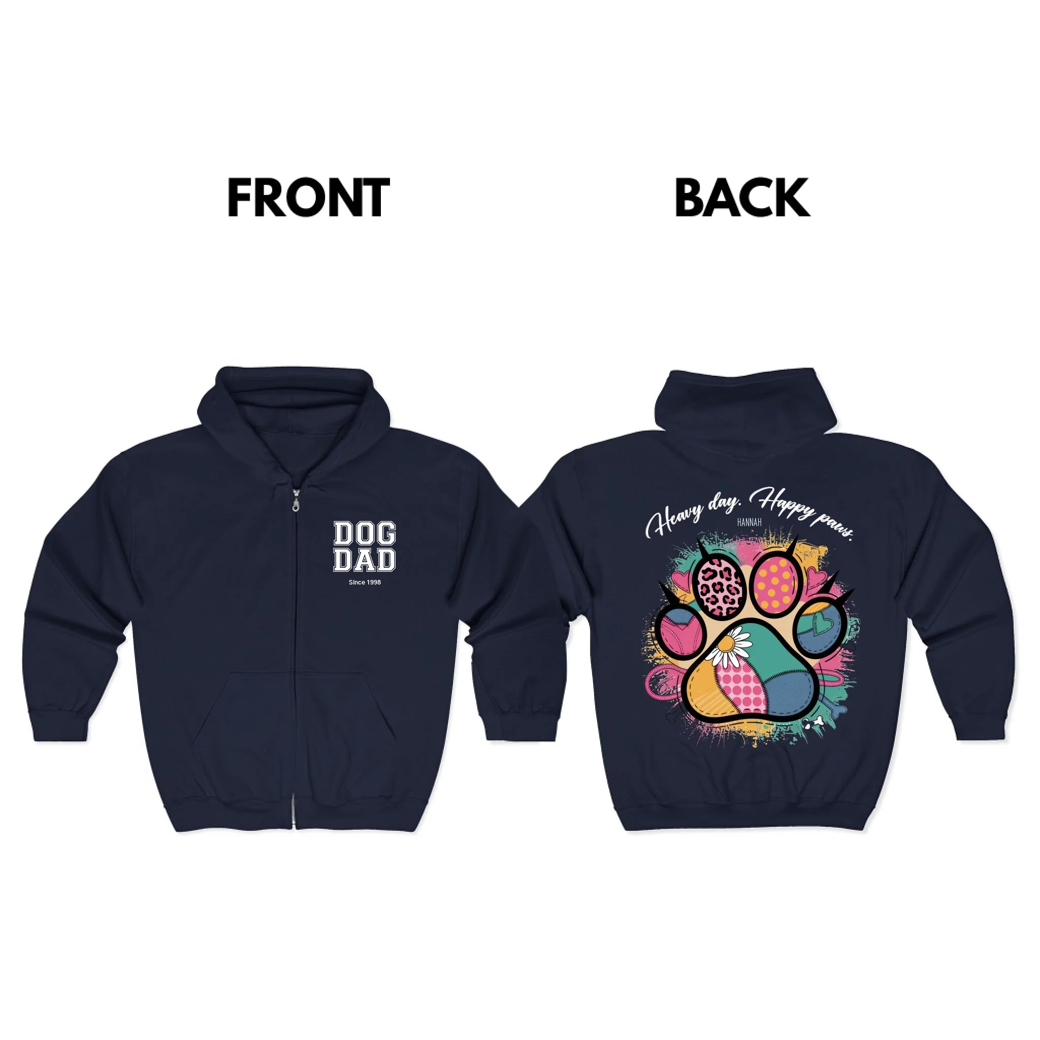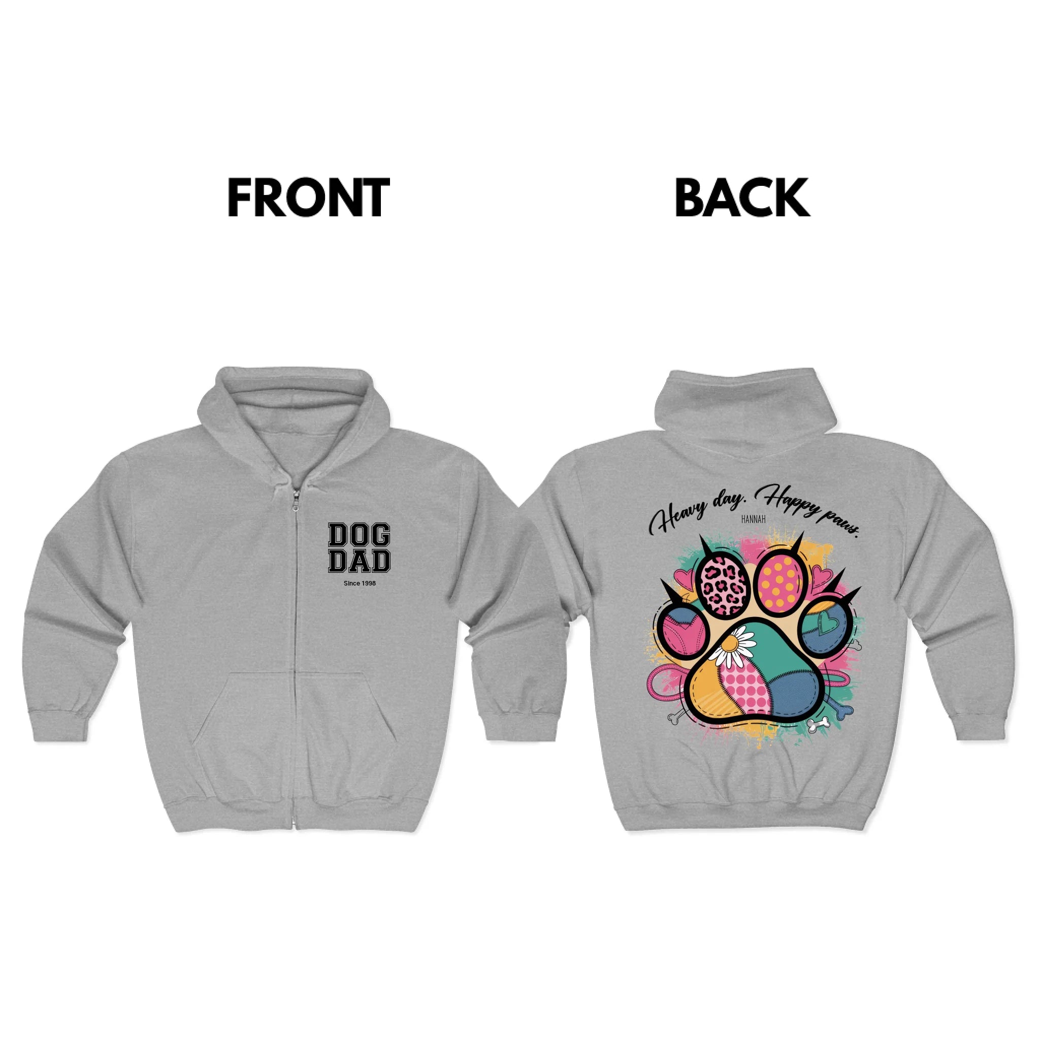 Heavy Day Happy Paws Pets Zip Hoodie